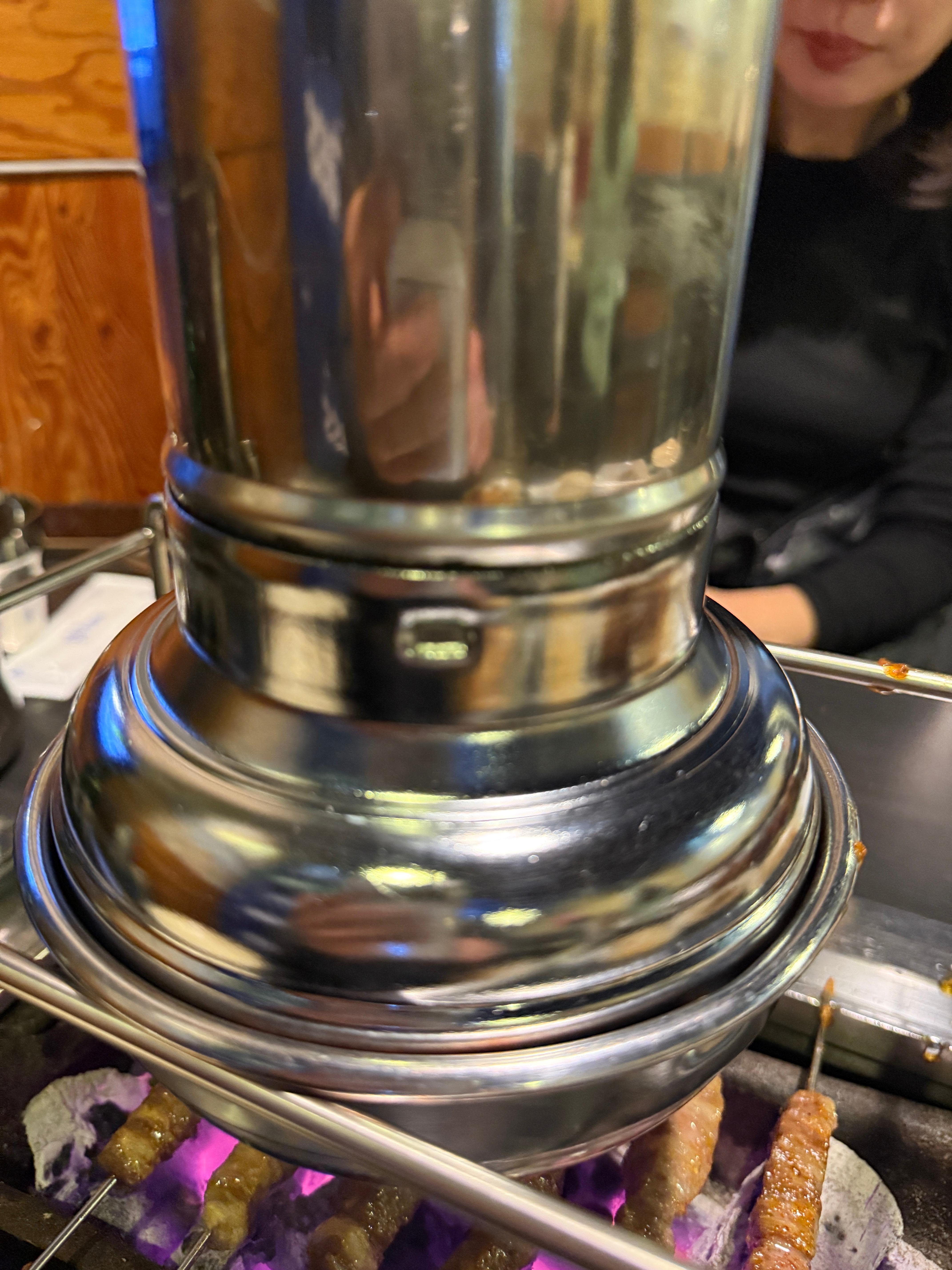 이 스테인리스 테이블 셋팅만 봐도 알겠다 이렇게 거울 처럼 깨끗하다니…. 실제로 잘 보고 있으니 사장님이 테이블 나가자마 아주 싹싹 말끔히 오랫동안 정리하신다. 연기 흡입하는 후앙내부도 테이블이 바뀔 때마다 계속 청소하신다. 테이블 위생 상태는 100점 만점에 150점은 줘야 겠다.