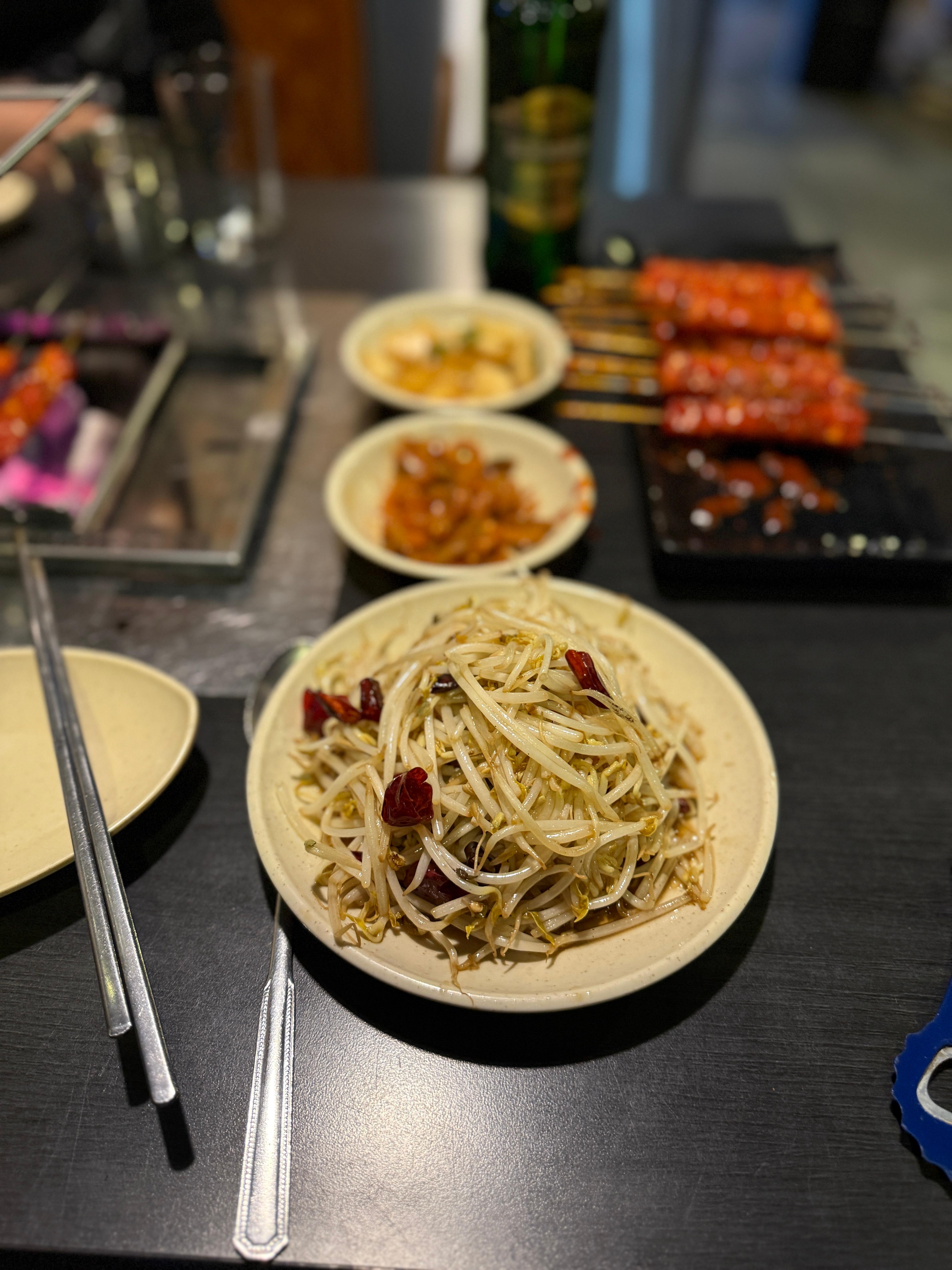 테이블 위생 상태에 이미 반해버려서인지 양꼬치를 먹는데도 다른 곳에서 먹을때와 다르게 나름 신선한 냉장감이 느껴진다. 굽기 좋은 상태로 냉동에서 > 냉장 상태로 변해 있었다.  이게 조금 이상하면 굽는 동안에 고기가 완전 쫄아 구워져서 먹을게 없다.