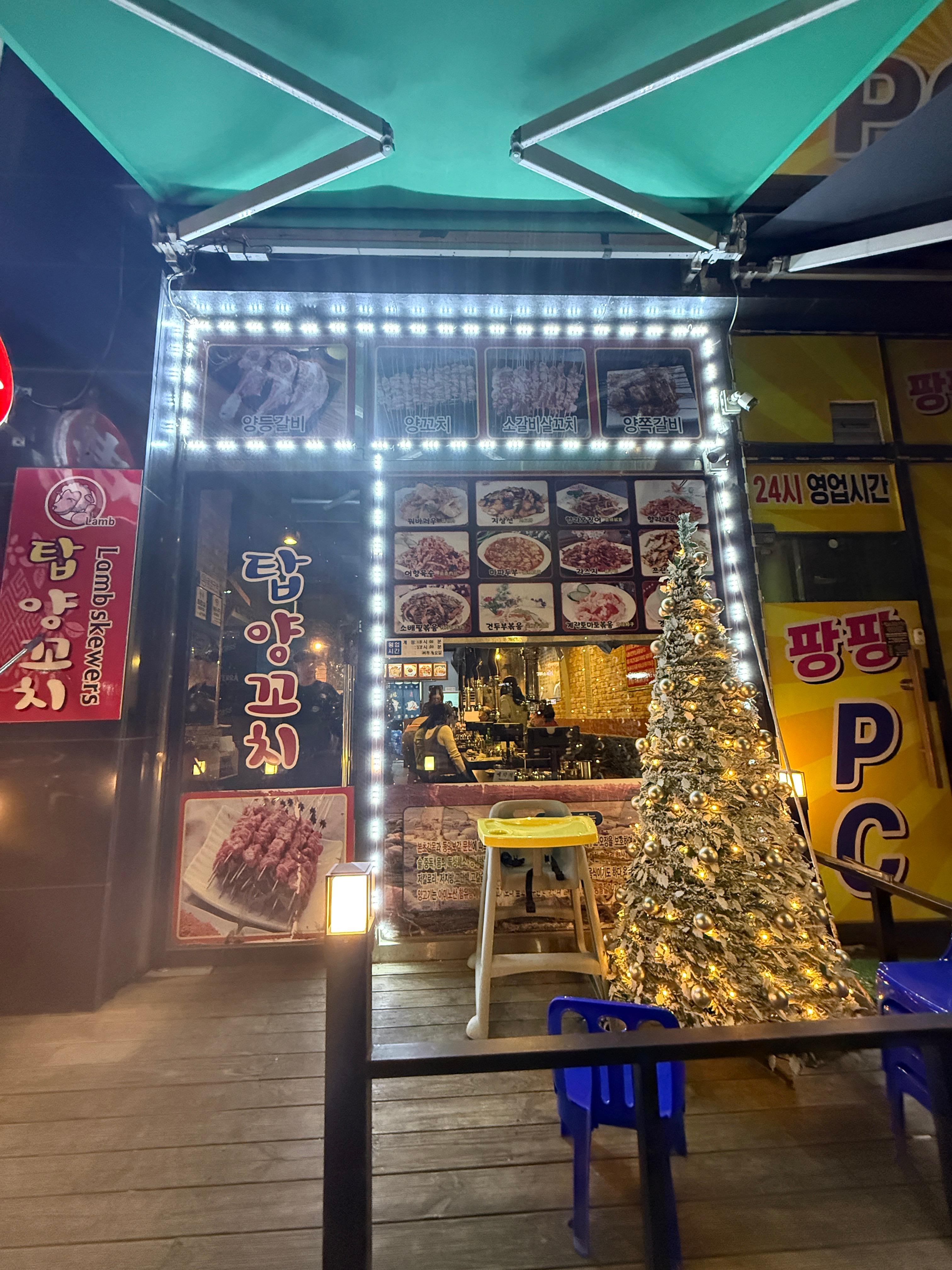 건물 지하에 주차 가능하고 1층으로 나와서 길밖에서 식당을 들어가야 한다. 양꼬치는 당연히 술과 먹어야 한다는 생각했기에 저녁 6시는 조금 이른가? 했는데 남은 테이블이 단 1개이다. 아! 장사가 잘되는 곳이구나~~