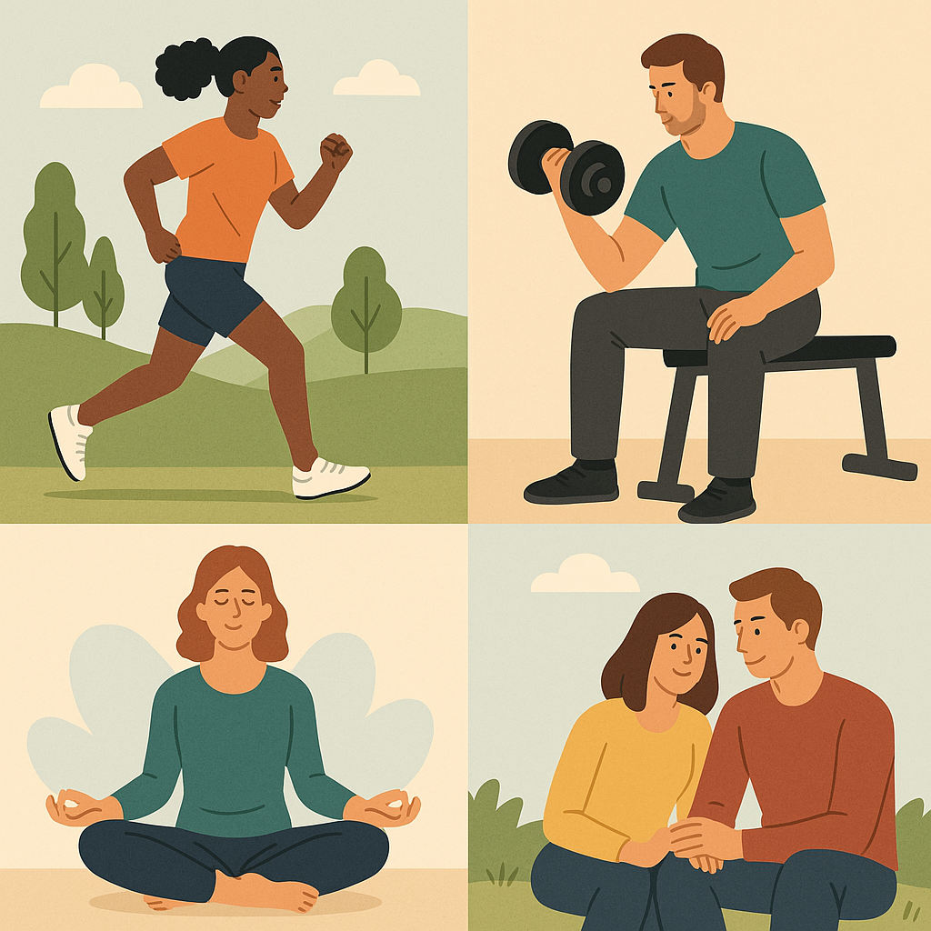 신체적 건강의 관점에서 레크리에이션 활동은 대표적인 유산소 운동과 근력 운동의 효과를 포함하고 있다. 유산소 기반 레크리에이션 활동에는 걷기, 조깅, 자전거 타기, 수영, 라인댄스, 에어로빅 등 일상생활 속에서 쉽게 실천할 수 있는 움직임이 포함된다. 이들은 심폐기능을 향상시키고 지방 대사를 촉진하여 체지방 감소, 혈압 조절, 당뇨병 예방 등 다양한 질환 예방 효과를 가진다. 특히, 걷기 프로그램은 고령층부터 전 연령층까지 누구나 부담 없이 참여할 수 있으며, 일상의 건강습관으로 정착될 수 있는 잠재력을 갖고 있다. 서울시의 ‘100세 건강걷기 동아리’는 자치구 보건소와 연계하여 매주 주민들이 함께 걷고 건강을 체크하는 활동으로, 혈압·체지방 감소와 같은 건강 지표가 유의미하게 향상되었다는 평가를 받고 있다.