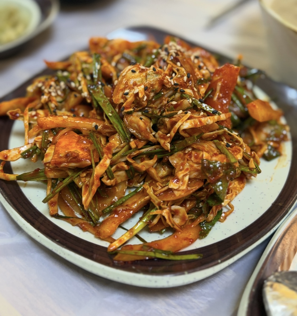 다음으로 등장한 것은 백합회무침이다. 붉은 양념에 버무려진 백합회무침은 시각적으로도 군침을 돌게 한다. 얇게 썬 백합 살과 신선한 채소들이 매콤새콤한 양념과 어우러져 환상의 조화를 이룬다. 쫄깃하면서도 부드러운 백합의 식감과 양념의 감칠맛, 그리고 채소의 아삭함이 한데 어우러져 입맛을 돋우기에 충분하다. 밥과 함께 먹거나 술안주로도 훌륭한 메뉴이다.