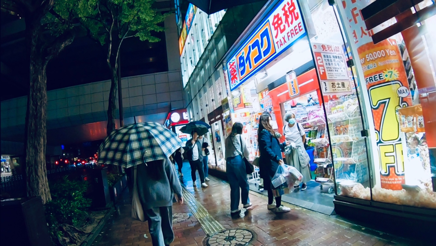 1시간 전에 “저스트밋” 이라는 다이묘 지역의 야끼니꾸 집에서 신나게 배를 불리고 우산을 받쳐들고 후쿠오카의 골목길의 빗속 아스라한 어둠과 상점들의 불빛에 젖어들며 숙소로 향하는데… 돈키호테는 아닌데 드러그스토어가 보인다. 익히 요즘 일본 잡화점 스타일 아는 일행들이 돈키호테 따로 갈 시간이 없으니 여기 그냥 들어가자고 한다.