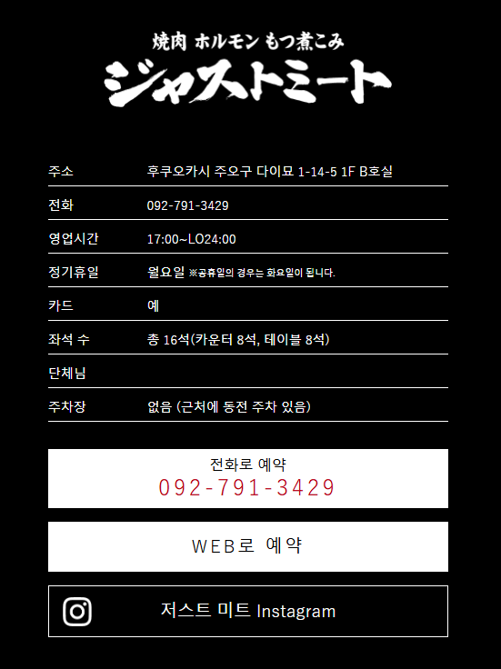 예약하기: https://www.tablecheck.com/ko/justmeat/reserve/message?utm_source=google