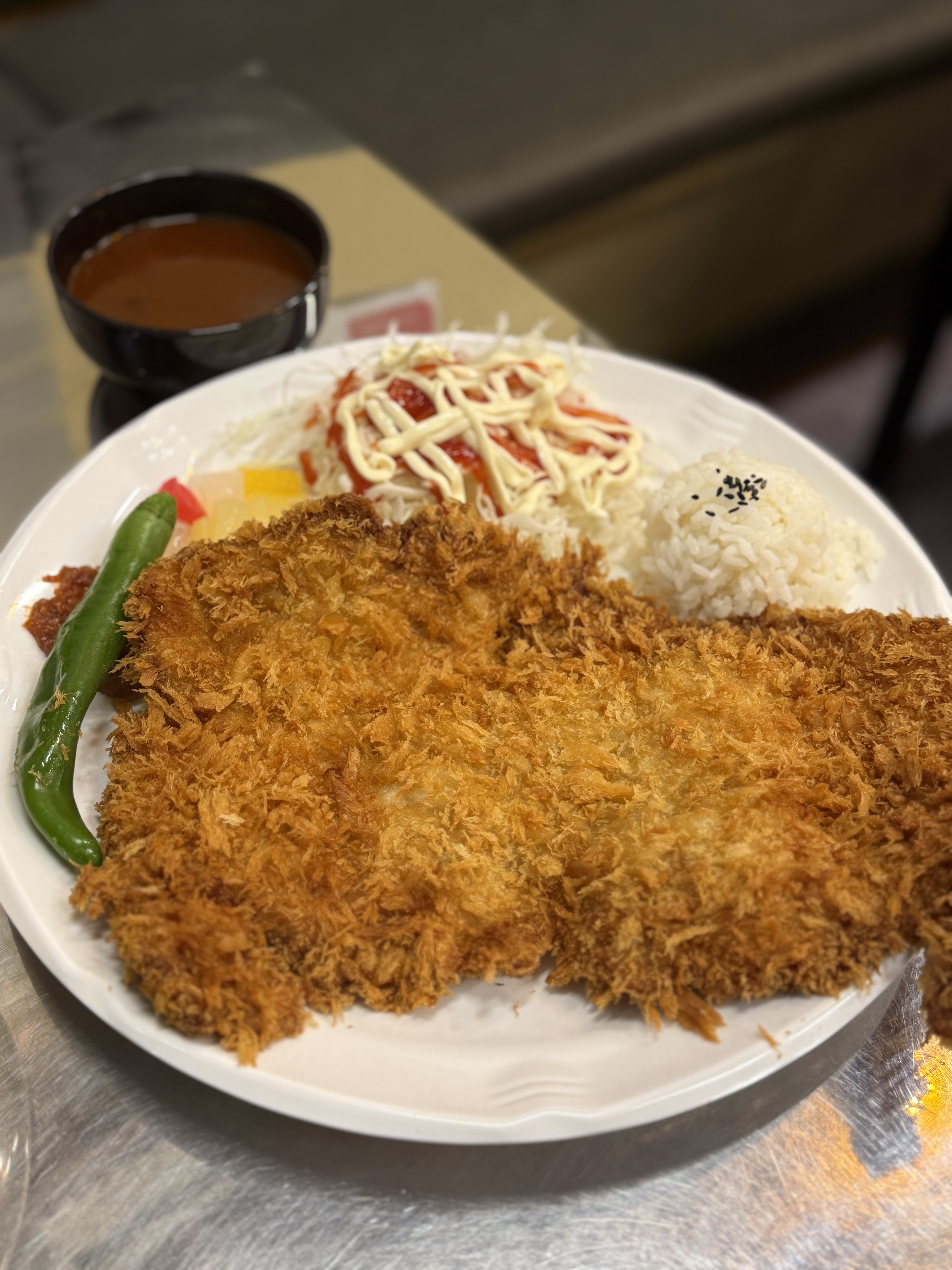 매운 왕돈까스: 양념은 따로 찍먹할수 있게 그릇에 나온다. 아 근데 안매워 ㅜㅜ 아내는 맵단다 ㅜㅜ 그러나 오히려 매운 돈까스가 안맵다고 느껴지니 약간의