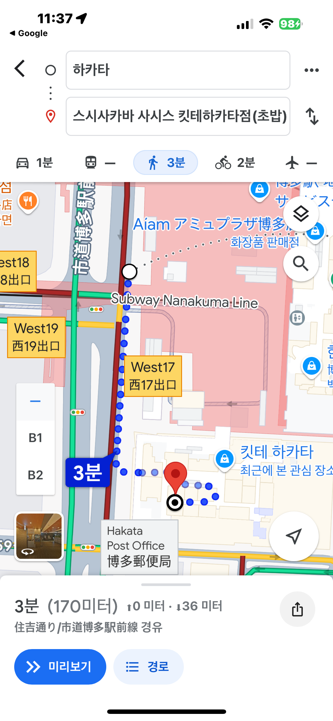 여기 초밥은 부드럽고 약간 질퍽한듯 하면서도 쫀득하다. 대체로 실제 일본에서 초밥들은 내 입맛엔 비슷한 느낌이다. 우선 프랜차이즈여서 특별히 맛나지 않을거라 생각했는데… 프랜차이즈가 이정도의 가성비와 맛을 가진다면 충분히 여행객이 찾을만한 곳이다. 특히 여행객들이 필수 경유지인 하카타역에 있다는 것은 최고의 장점이다.