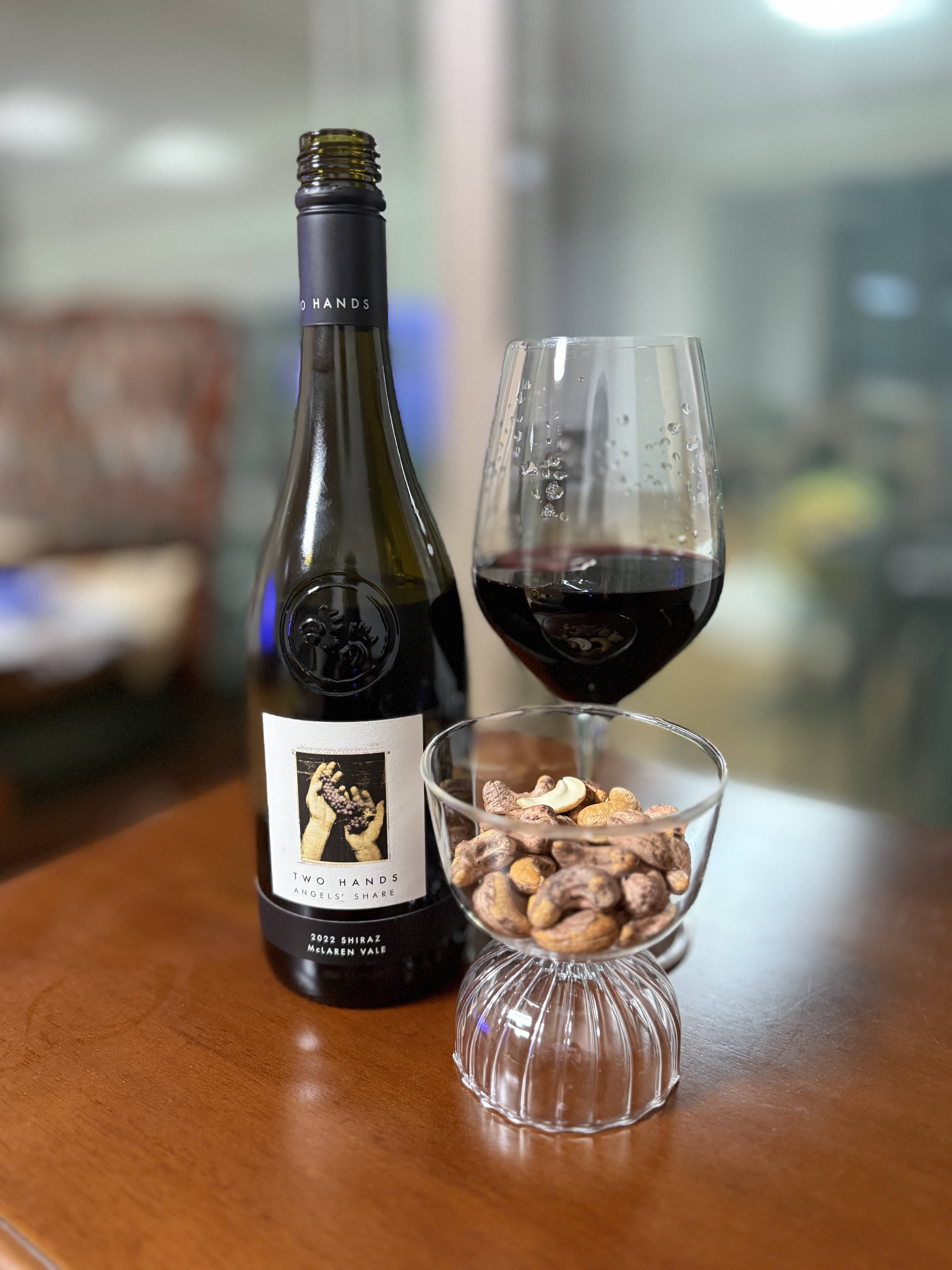 ‘Two Hands Angels’ Share Shiraz’는 호주 맥라렌 베일(McLaren Vale) 지역에서 생산되는 쉬라즈 품종의 레드 와인이다. 이 와인은 풍부한 과일 향과 부드러운 질감이 잘 느껴진다. 시원한 부드러움 보다는 정말 아주 시원한 과일 쥬스 깉은 느낌이다. 블루베리, 블랙베리, 자두 등의 진한 과일향이 강하고 아로마와 은은한 페퍼 향이 목넘김의 끝에서 나타난다. 또한 달콤한 향신료의 조화도 느껴진다.