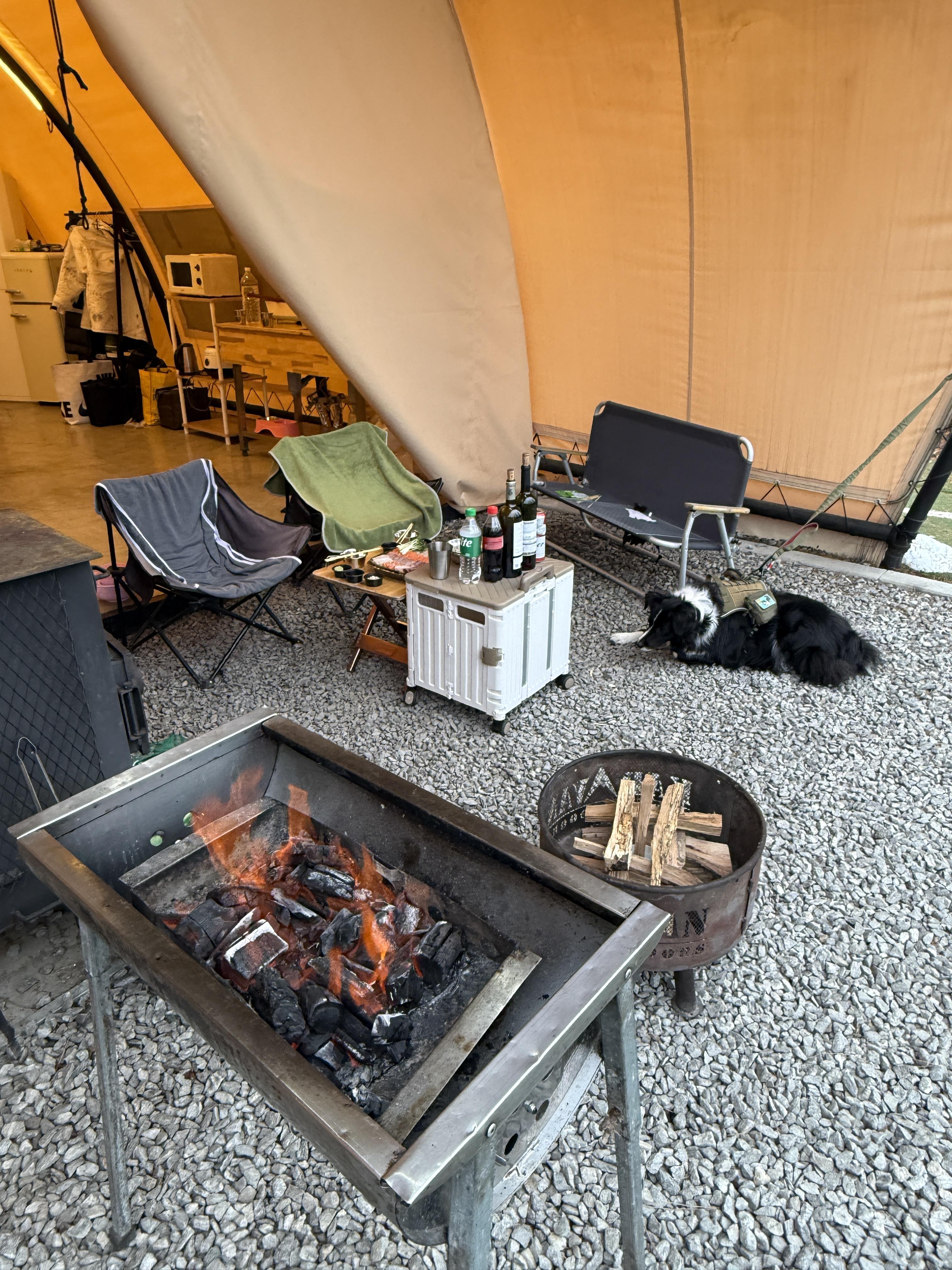 우리가 예약하고 머무른 곳은 시그니처 펫글램핑 텐트다. 침실과 샤워 화장실이 텐트안쪽에 있고 난방시설이너무 잘되어 있어서 11월에 폭설이 4일간 쭈욱 내린 직후에 방문한 것인데 텐트 안은 전혀 냉기는 없고 매우 따뜻했다.