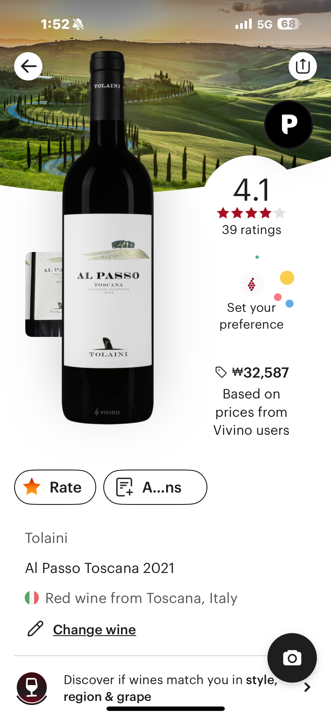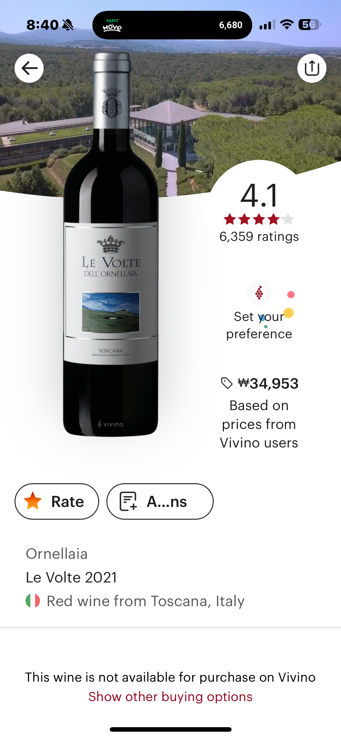 먼저 전제해야 하는 것이 있다. 비비노를 검색해서 알리고자 하는 것은 평점이다. 여기 자동으로 나오는 가격은 각국의 소비자들이 실구매한 가격의 전체 평균이라 평균값이 매우 저렴하게 나온다. 그래서 원화로 변경되어 나오는 오른쪽 중간의 가격은 무시하시길 ~~~